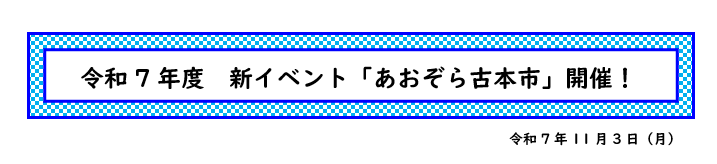 来年も実施してほしいとの声を多くいただきましたので、さらに工夫と改善を加えた「あおぞら古本市」を来年度も開催したいと考えています。